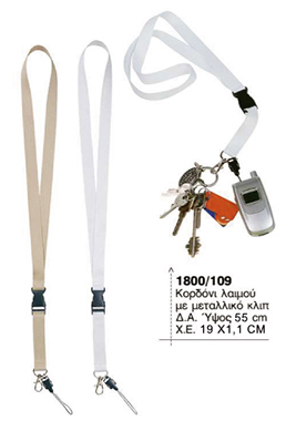 | ΚΟΡΔΟΝΙ ΛΑΙΜΟΥ LANYARDS ΚΩΔ.1806 | Κορδόνι λαιμού με μεταλλικό κλιπ και κλιπ ασφαλείας (πίσω μέρος λαιμού) |